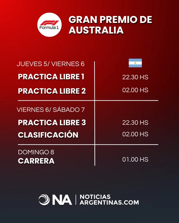 Cronograma del GP de Australia (horarios de Argentina)