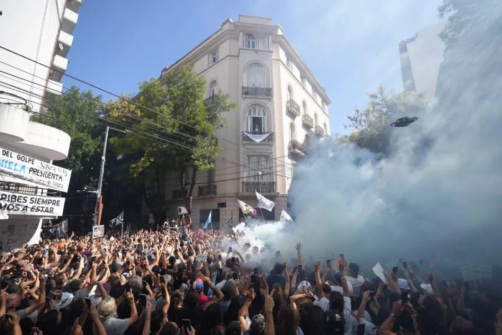 Tras vivar la ex jefa de Estado, los manifestantes siguieron la marcha hasta plaza de Mayo, donde una multitud realizaba una concentración en repudio al siniestro golpe militar.
