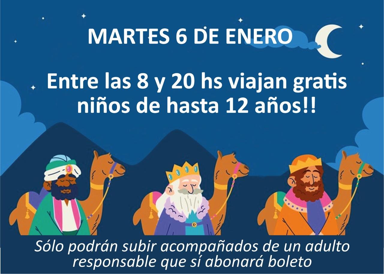 Como todos los años, este martes 6 de enero en que los chicos celebrarán la llegada de los Reyes Magos, SAETA habilitará el viaje gratuito para que los niños puedan participar de las distintas actividades organizadas para esta fecha.